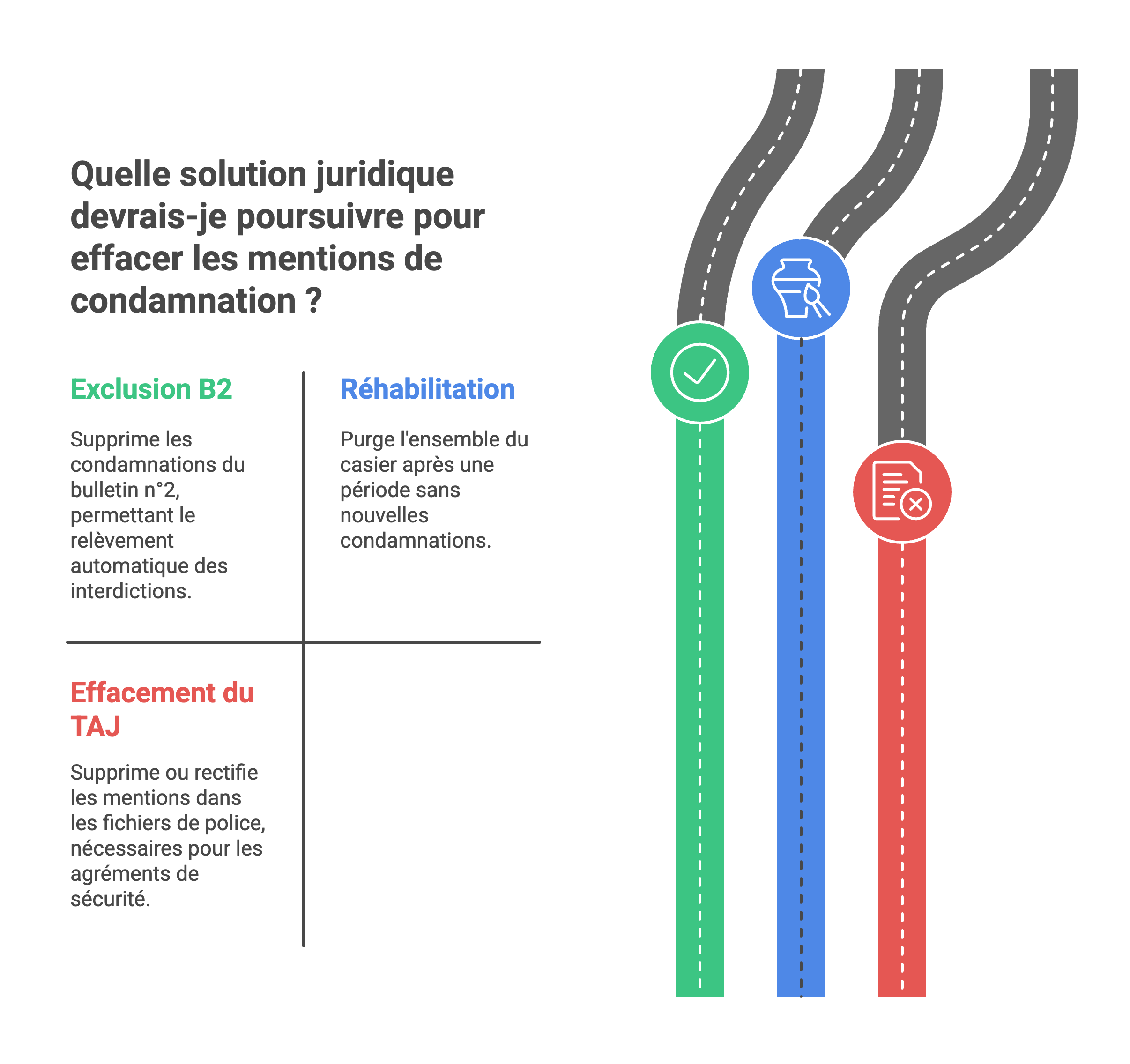 La stratégie consiste donc à assainir votre B2 (et, si besoin, le TAJ) avant de déposer une demande ou un renouvellement.