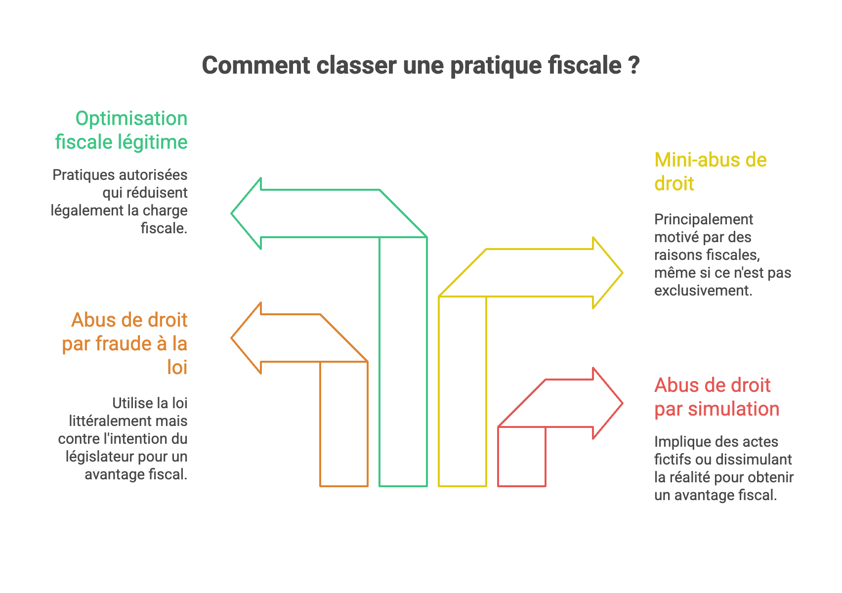 Depuis 2019, le législateur a ajouté une variante : le mini-abus de droit (article L.64 A LPF), qui permet de sanctionner les schémas dont le but est principalement fiscal, même s’il n’est pas exclusivement fiscal. Cela élargit considérablement le spectre des pratiques répréhensibles.